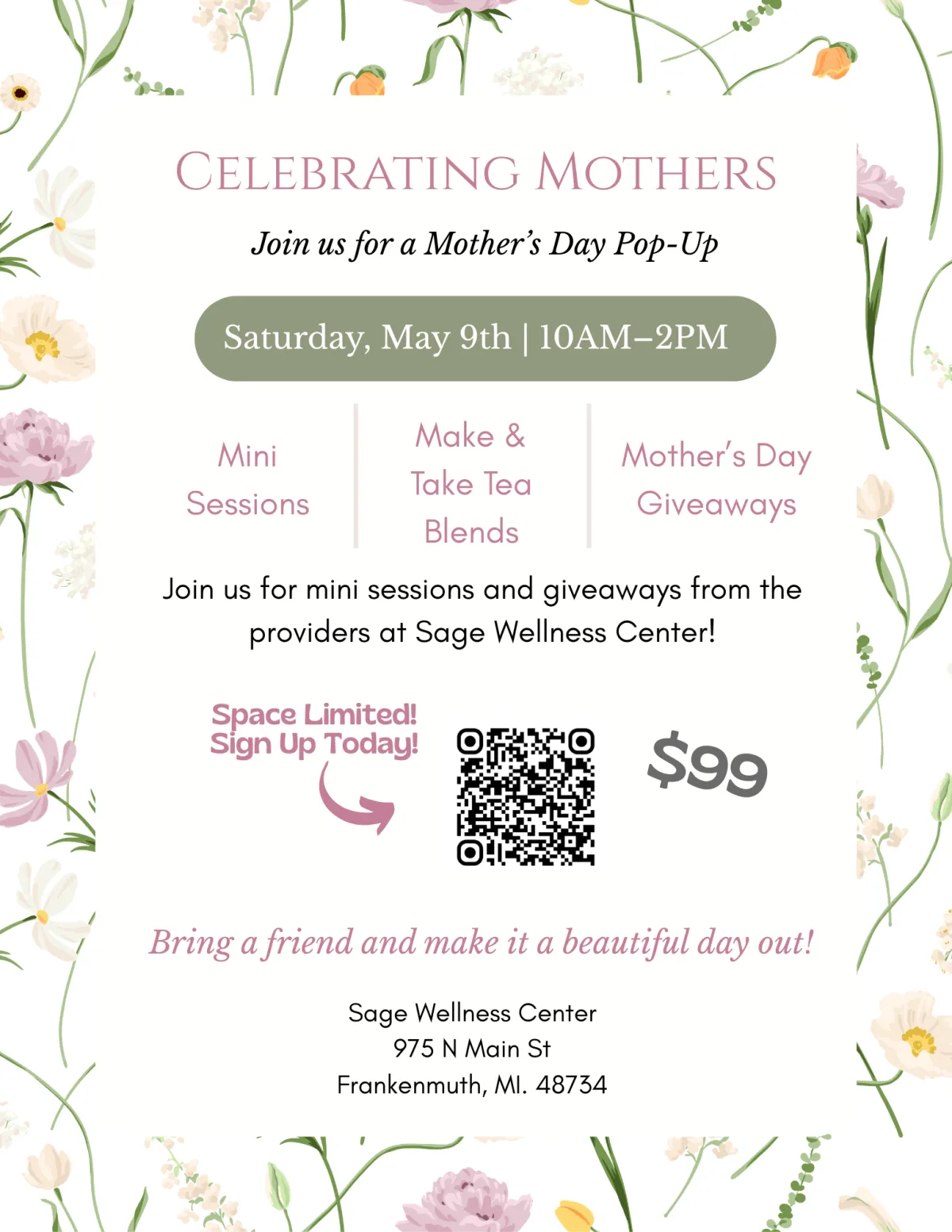 Join us Satuday May 9th 10-2pm for mini sessions with our experienced practitioners, a make and take tea blend table, meet our practitioners, try out the HaloSauna and RELAX. Bring a friend, fellow mom, daughter or sibling.